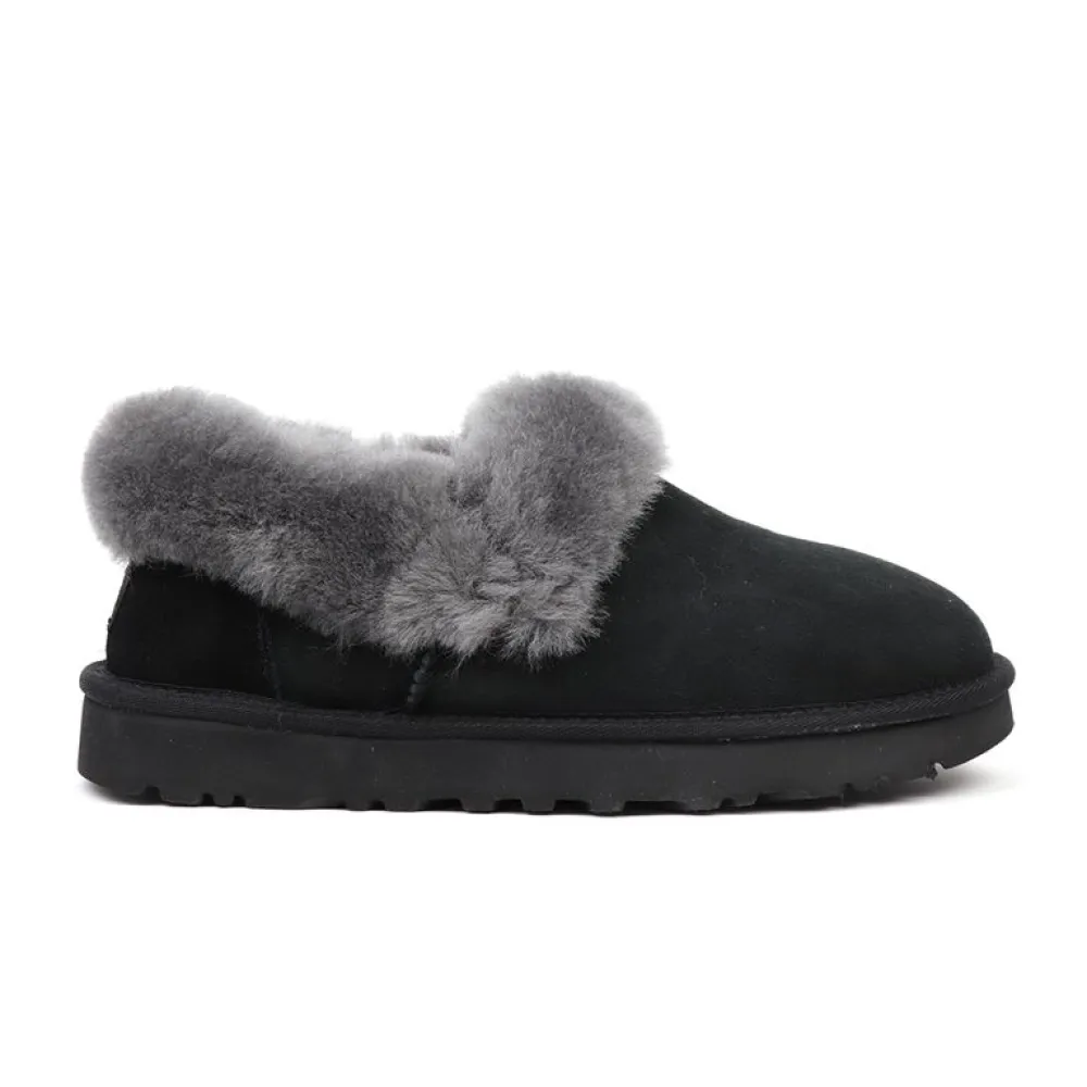 UGG Nita Slipper Black — это идеальное сочетание комфорта и стиля. Эти уютные тапочки выполнены из высококачественного овечьего меха, который обеспечивает тепло и мягкость при каждом шаге. Черный цвет делает их универсальными, позволяя сочетать с любым домашним образом.