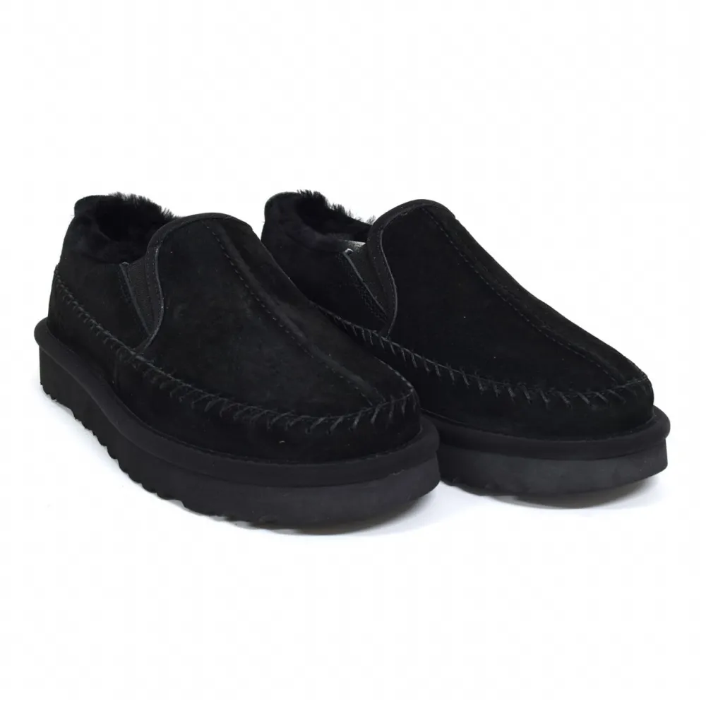 UGG Stitch Slip On Black — это идеальное сочетание комфорта и стиля. Эти слипоны выполнены из высококачественной кожи, что обеспечивает долговечность и элегантный внешний вид. Мягкая подкладка из шерсти UGG добавляет тепла и уюта, а легкая подошва гарантирует отличную амортизацию при каждом шаге.